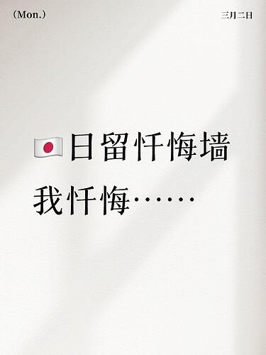 只忏悔,不解释 大家畅所欲言[话题]# 留学是一场孤岛求生[话题]# 我的留学故事[话题]# 日语人的精神状态[话题]# 留子的精神状态[话题]# 畅所欲言贴[话题]# 做好事不留名[话题]# 留子的命也是命[话题]# 留学生精神[话题]# 日本人[话题]#