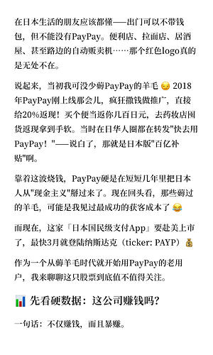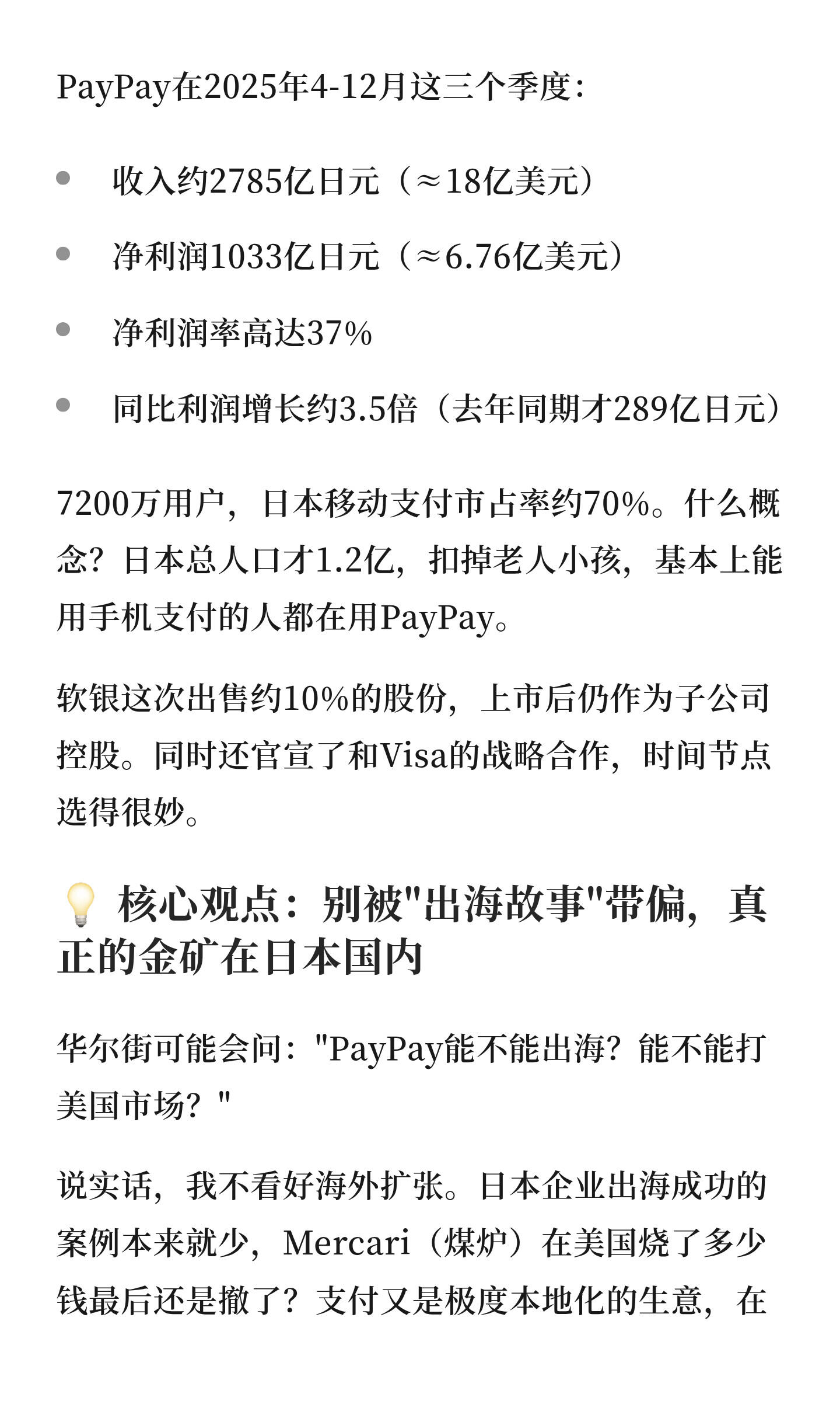 说实话,我不看好海外扩张。日本企业出海成功的案例本来就少,Mercari(煤炉)在美国烧了多少钱最后还是撤了?支付又是极度本地化的生意,在美国面对Venmo、Zelle、Apple Pay,几乎没有胜算。